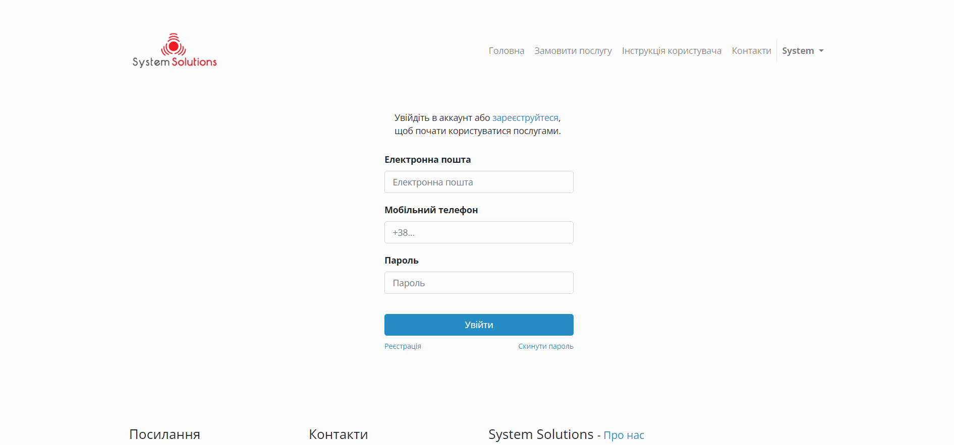 Необхідно перейти до порталу за посиланням my.systemnet.com.ua, та натиснути “Вхiд у кабінет”