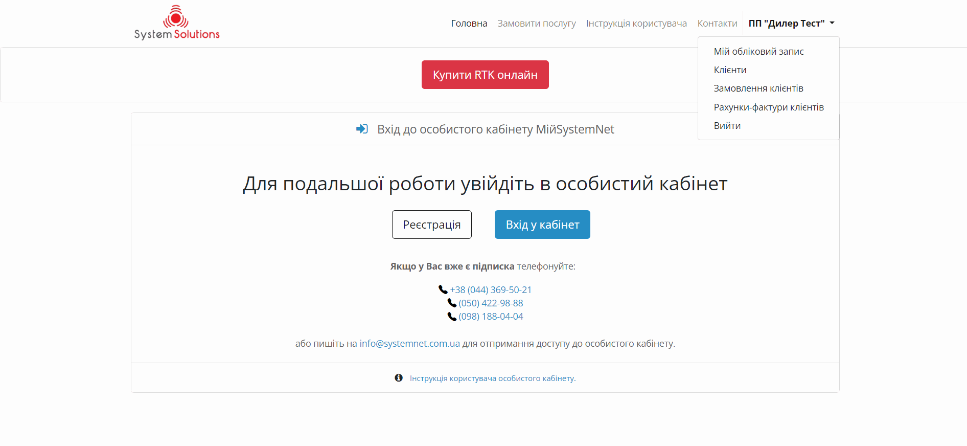 Авторизація Дилера RTK-підписок відбувається так само, як і звичайного користувача.